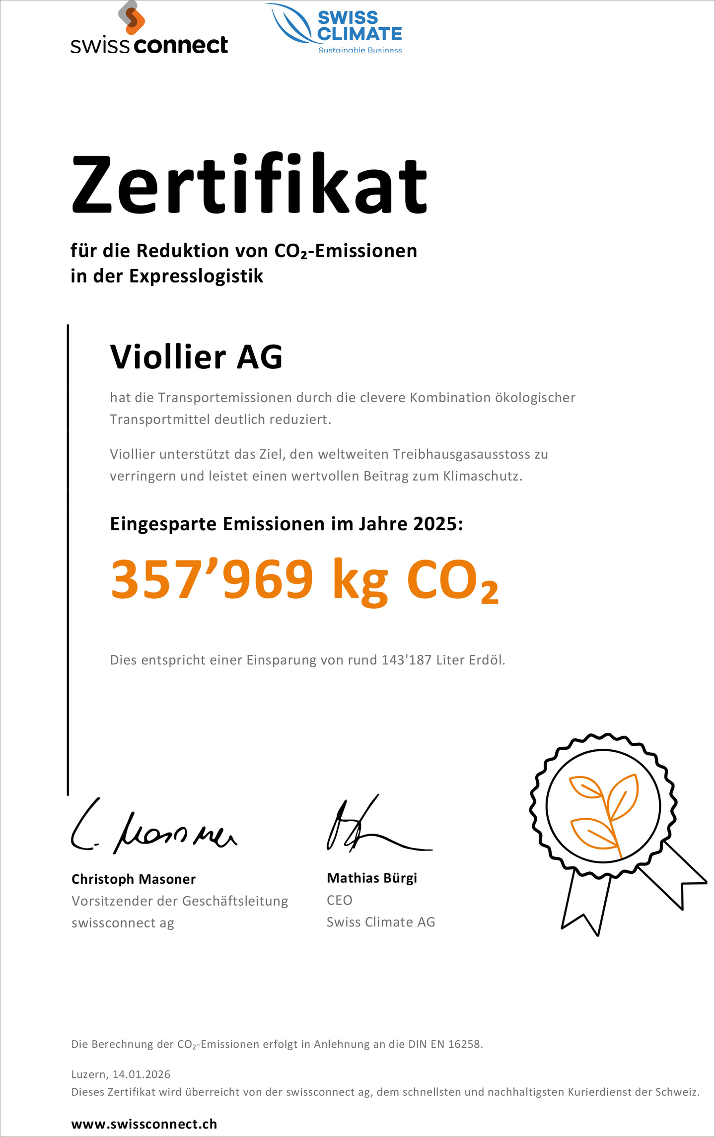 By reducing transport-related CO₂ emissions, Viollier is making an important and valuable contribution to climate protection.